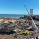 The demolition of the former Beach Leisure Centre is progressing with the former flumes tower now dismantled and works should be completed within the next few weeks.