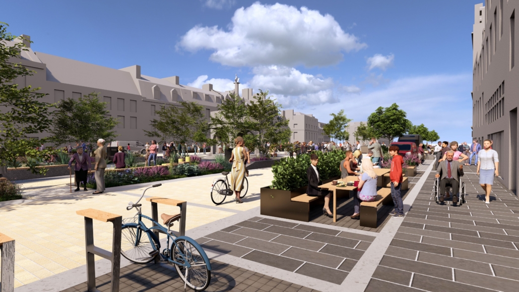 Major streetscape enhancements will be undertaken to re-establish the Castlegate as a key civic location, providing a high-quality space which creates an attractive destination at the east end of Union Street for the benefit of residents, visitors and local businesses.